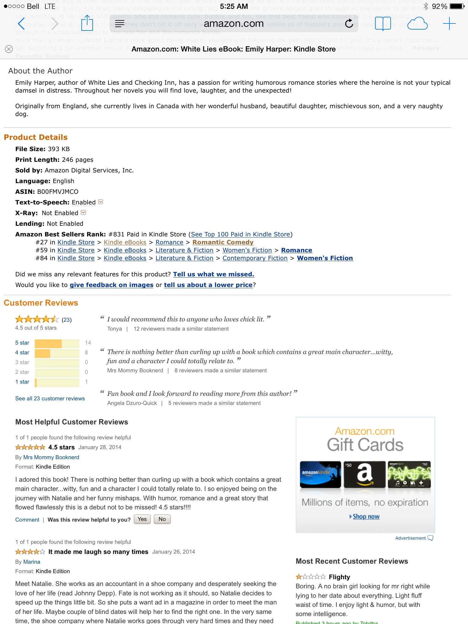 “I’m your only author,” I counter. “You have one bookshelf which has like six books on it, and they’re all mine.”